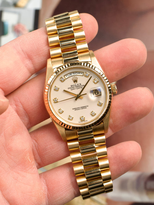 Rolex Day Date 18238 Cacholong Diamond Stone 18 Carat Gold 1990s