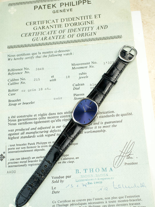 Patek Philippe Ellipse 3848 FULL SET Blue Sigma 18 Carat White Gold 1970s