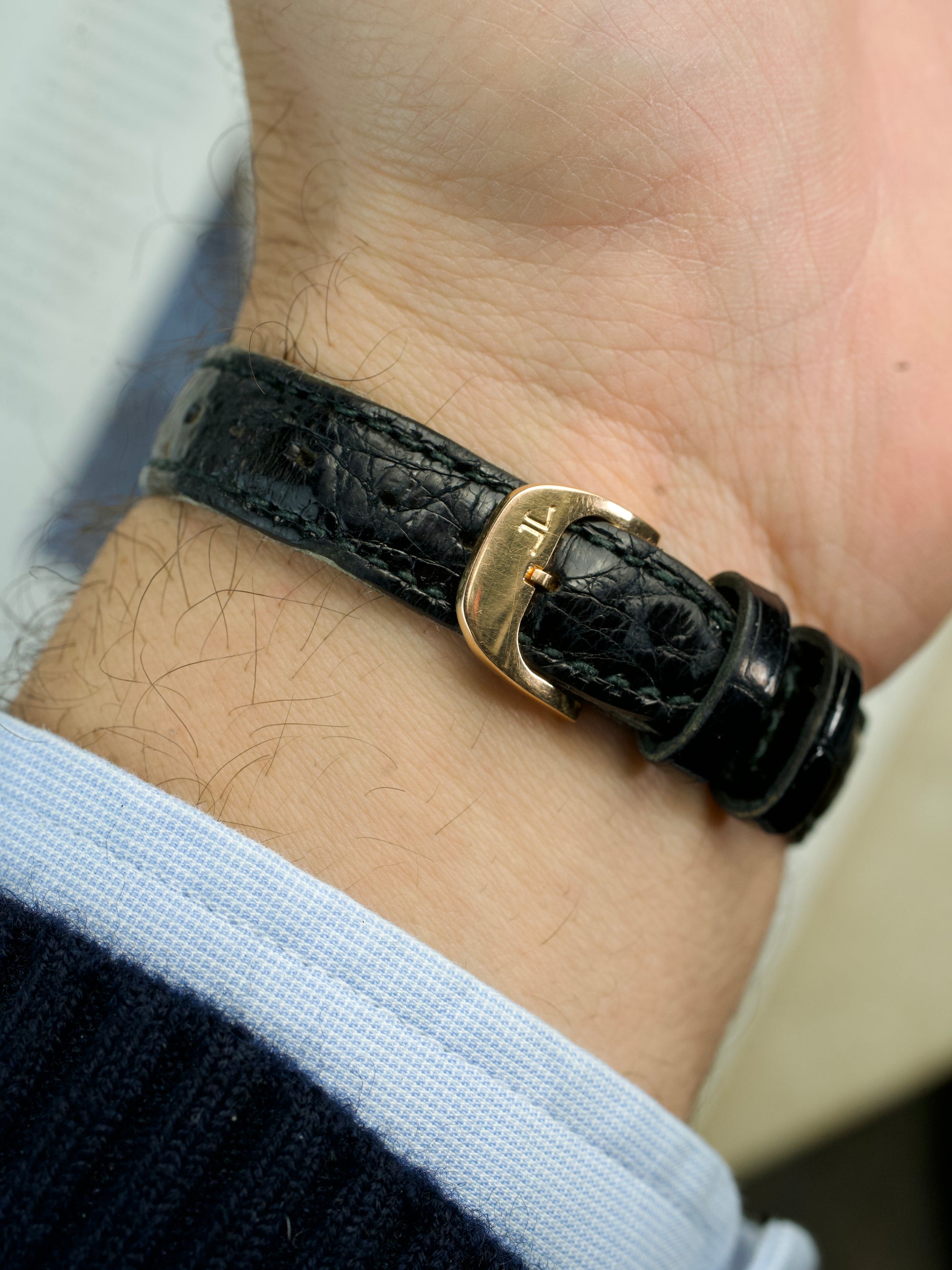 The luxury vintage watch comes with the original JLC leather strap and is fitted with the original Jaeger LeCoultre 18 carat rose gold buckle.