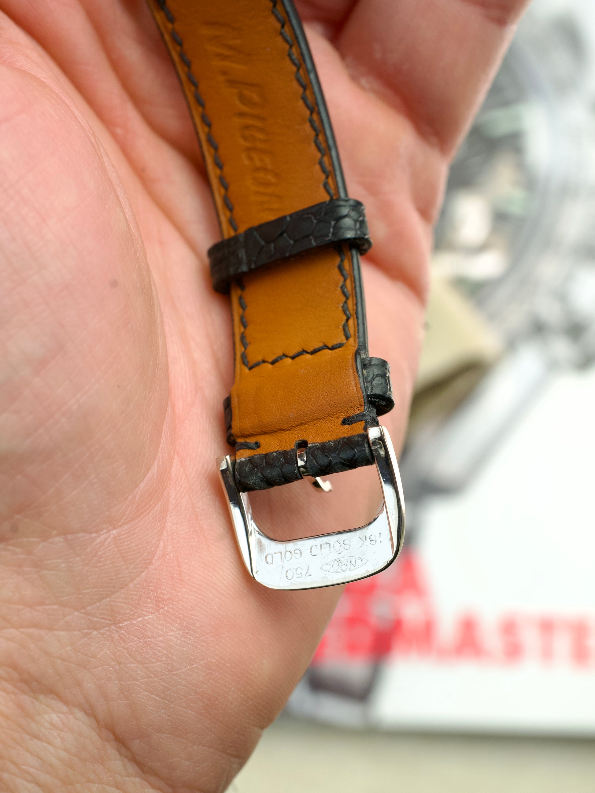 The luxury vintage watch comes original Jaeger LeCoultre 18 carat white gold buckle.