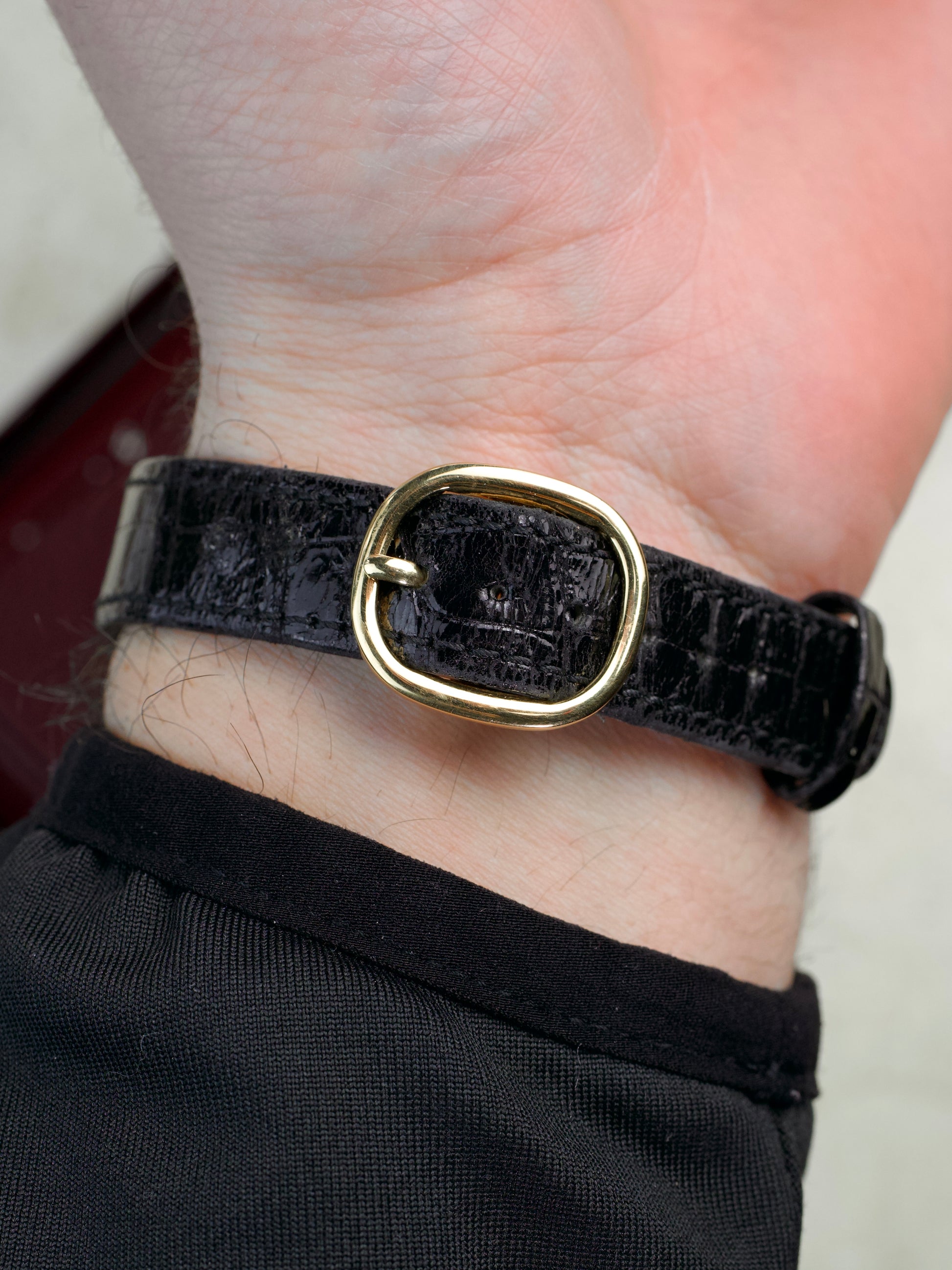 This collectible features a very rare and all original Patek 18 carat gold ellipse shape Patek pin buckle. Furthermore it comes on all original Patek Philippe strap.