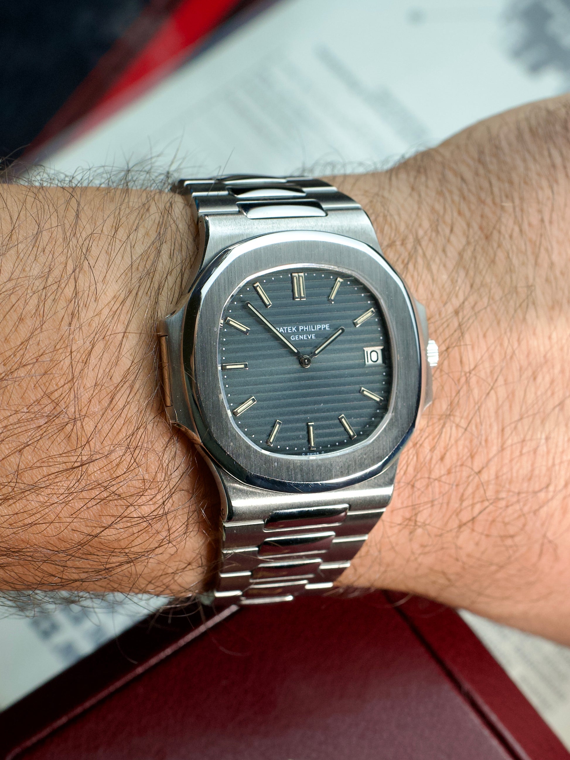 The vintage preowned watch comes with Patek Archives! This Preowned watch dates back to 1977!